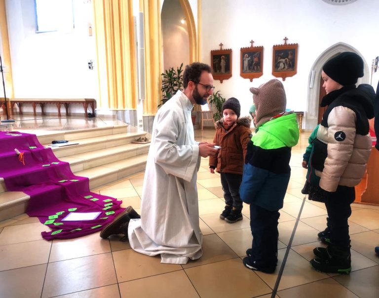 Am Aschermittwoch feierten die Kindergartenkinder, mit einigen Eltern und Geschwistern, den Beginn der Fastenzeit. Der Aschermittwoch ist der Beginn der Vorbereitungszeit auf Ostern und dies erarbeitete Herr Johannes Tauer sehr anschaulich mit den Kindern. 40 Kärtchen wurden als Weg auf…